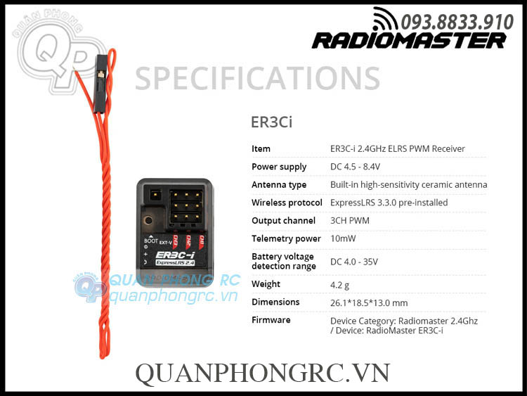 Thông số kỹ thuật ER3C-i (Bao gồm trong phiên bản ExpressLRS)