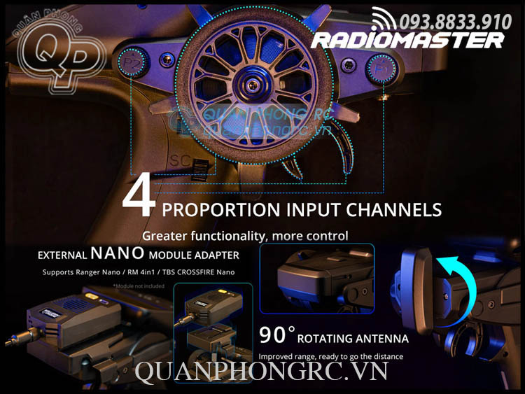 Khoang mô-đun: Kích thước Nano (Mô-đun RadioMaster Ranger Nano / Mô-đun RadioMaster RM 4in1 / Mô-đun TBS Crossfire Nano)