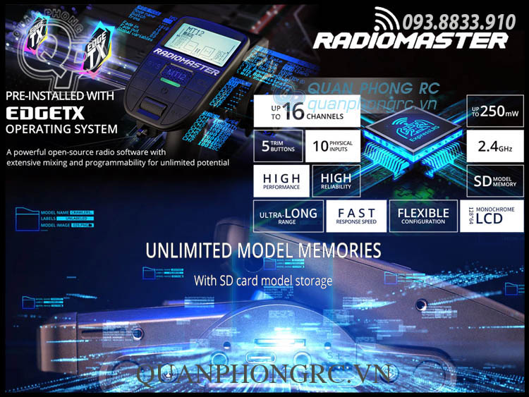 - Phần mềm EdgeTX được cài đặt sẵn