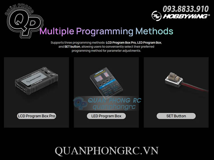 - Sản phẩm được thiết kế đặc biệt cho người mới bắt đầu, dễ sử dụng, không cần thiết lập phức tạp, mang lại chất lượng cao theo tiêu chuẩn của Hobbywing.