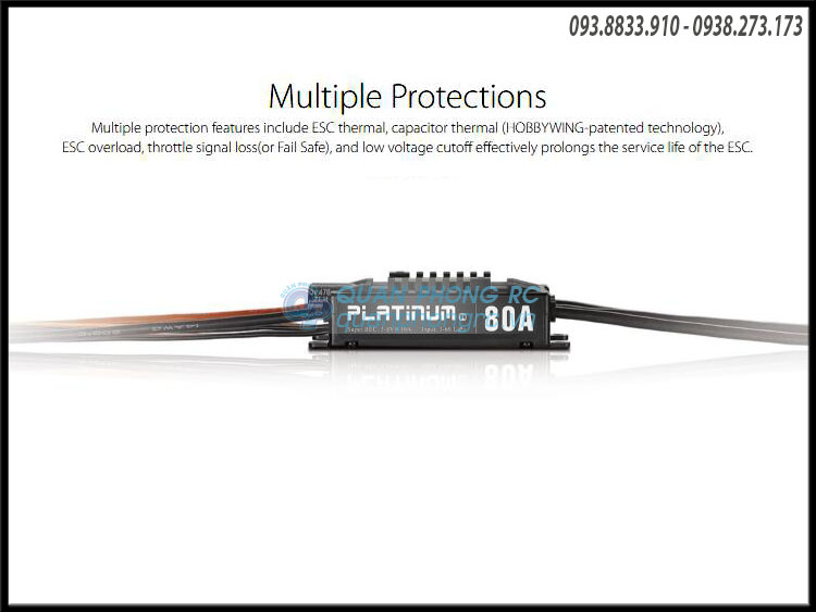 ESC overload, throttle signal loss(or Fail Safe), and low voltage cutoff effectively prolongs the service life of the ESC.
