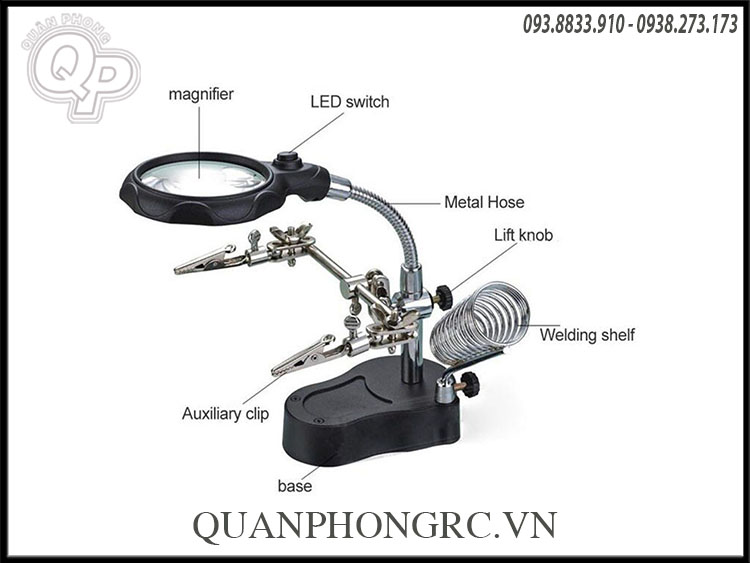 - Moveable arms and adjustable crocodile holding clamps allowing hands free use