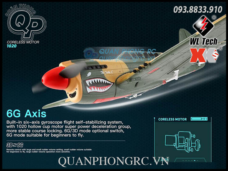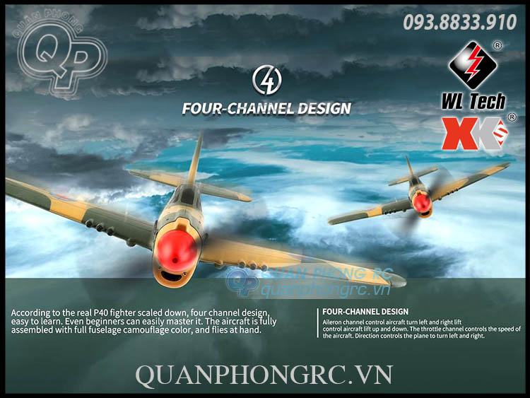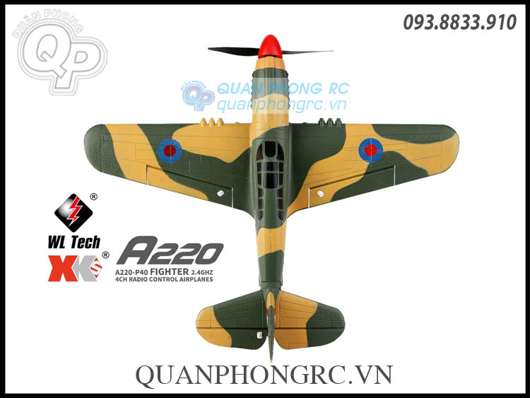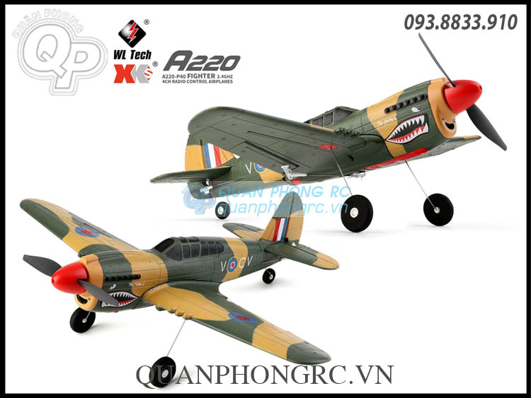 - XK A220 P40 là máy bay điều khiển từ xa của hãng XK, mô phỏng theo mẫu Curtiss P-40 trong thực tế, là kiểu máy bay tiêm kích và máy bay tấn công mặt đất của Mỹ bay lần đầu vào năm 1938, được dùng với số lượng lớn trong Thế Chiến II. Mạch điều khiển bay bổ sung thêm hai slot chuyển đổi receiver. 5V phù hợp với FUTABA (S-BUS) J và các bộ thu khác có cổng (S-BUS), và 3V phù hợp với bộ thu DSM.