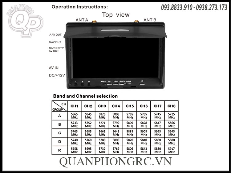 Hiển thị OSD trạng thái làm việc: Chỉ báo RSSI; Chỉ báo pin; Chỉ báo kênh Chìa khóa để tìm kiếm tín hiệu tự động