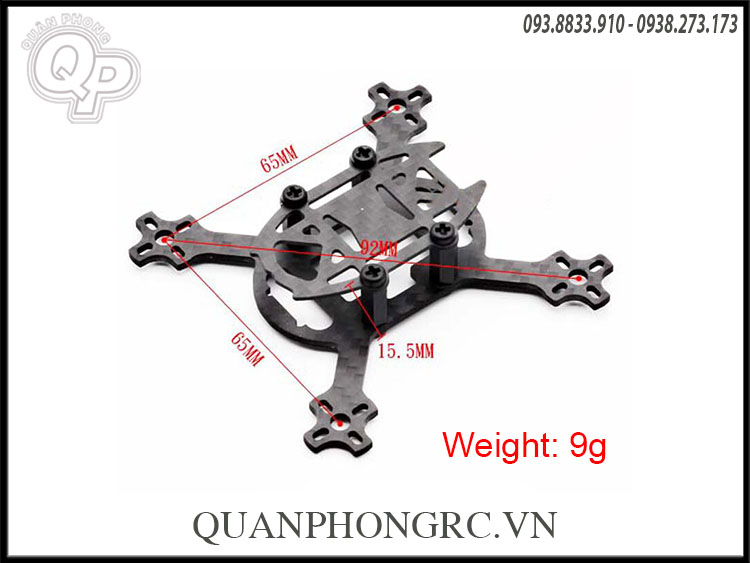 Reserved mounting space for mini FPV camera, flight controller, receiver and battery.