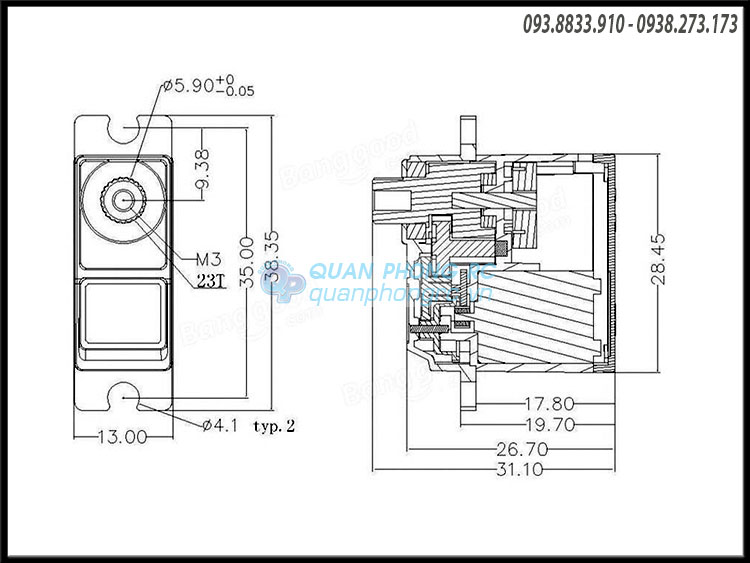 Mô-men xoắn 6.0V 3.5kg.cm Max