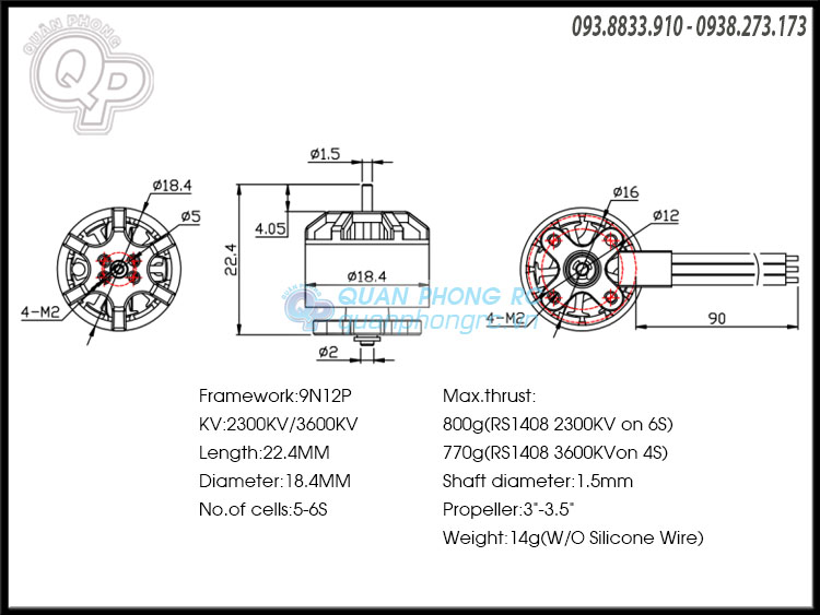 770g(RS1408 3600KVon 4S) - Shaft diameter:1.5mm