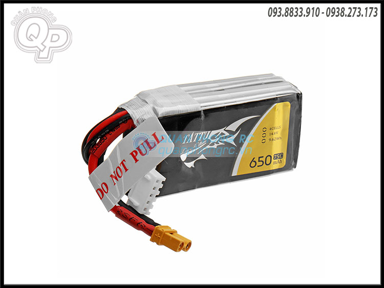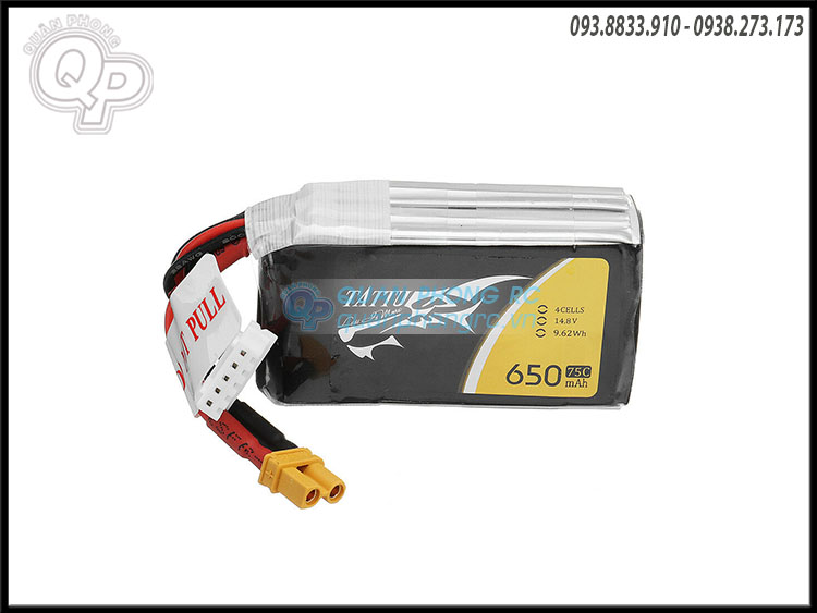 Tattu 650mAh 4S1P 75C 14.8V Lipo battery with XT30 plug provide high quality, reliable power and it is specially designed for your 90-150mm size FPV quadcopters.