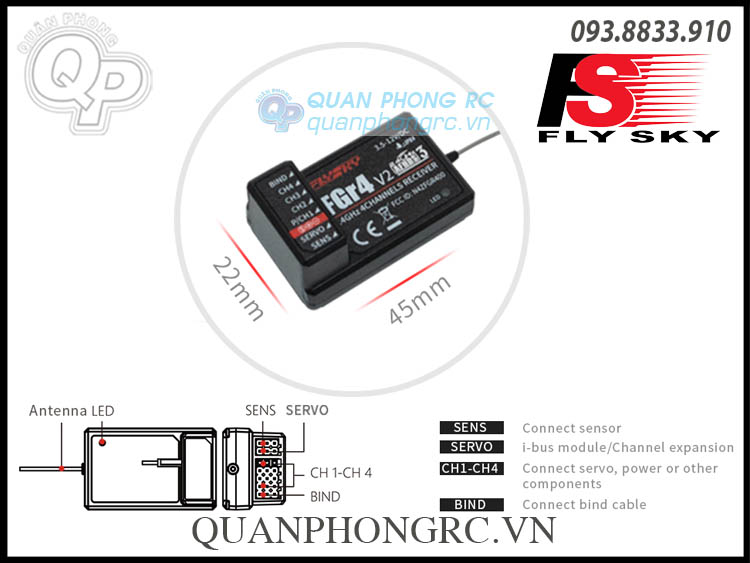 Bộ Thu Sóng FS-FGR4 V2 2.4Ghz 4CH AFHDS3 Receiver Cho FlySky Noble FS-NB4