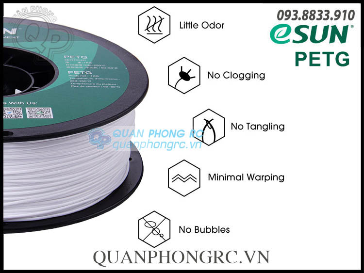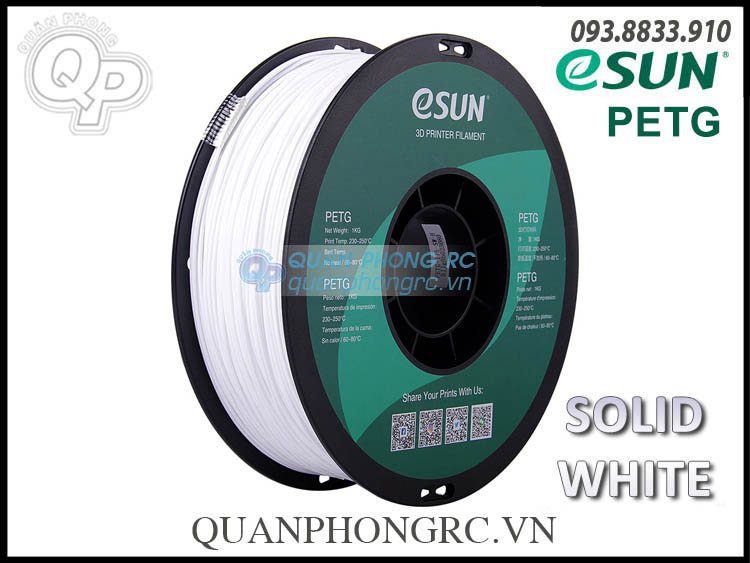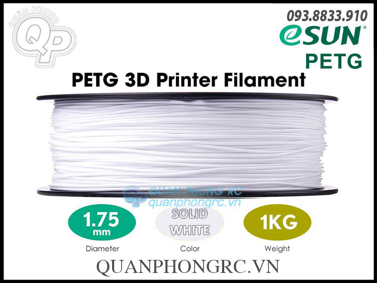 Sợi nhựa PETG là một trong những loại vật liệu mới cho in 3D được đánh giá tốt nhất hiện nay. Sợi nhựa PETG có thể chịu nhiệt tốt như ABS (80oC), dễ sử như nhựa PLA và là một trong những vật liệu in 3D cứng nhất trong bảng xếp hạng.