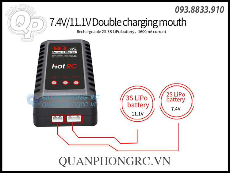 Sạc B3 HOT RC 20W: dùng sạc cho pin Lipo 2-3S