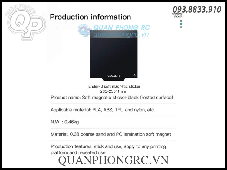 - Dán Dẻo 235*235mm: https://quanphongrc.vn/ct/may-bay-dieu-khien/3994/dan-ban-nhiet-tu-tinh-creality-magnetic-platform-sticker-for-ender-3-series-235235mm.html