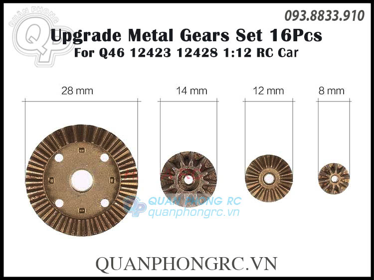 WLtoys 16Pcs Upgraded Metal Gear For 144001 12428 12423 Q46 FY01 FY02 FY03 1:12 RC Car