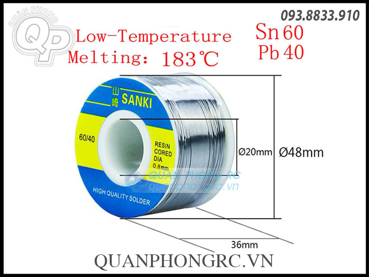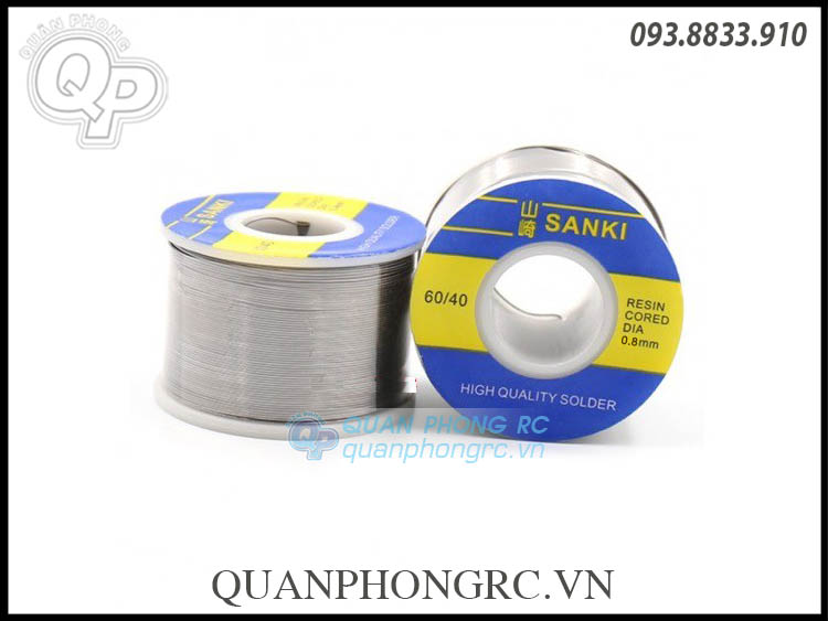 Thiếc Hàn Sanki 0.8mm 250g là hợp kim có điểm nóng chảy khá thấp, khoảng từ 90 đến 450 °C (200 tới 840 °F), được sử dụng trong việc liên kết bề mặt các kim loại khác nhau.