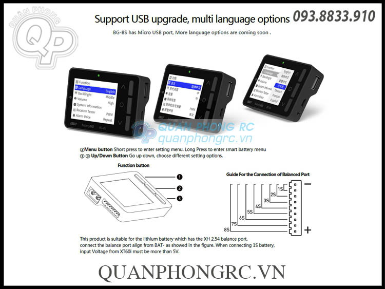 260,000 color display visible under strong sunlight. Exquisite and powerful BG-8S smart battery checker fully support BattGO technology. Very smart choice for rc fans.
