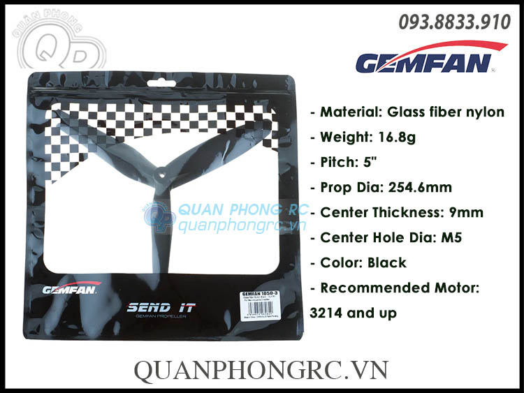 1 Cặp Cánh 3 Lá GEMFAN 1050 3 Blades Nylon Carbon Propeller