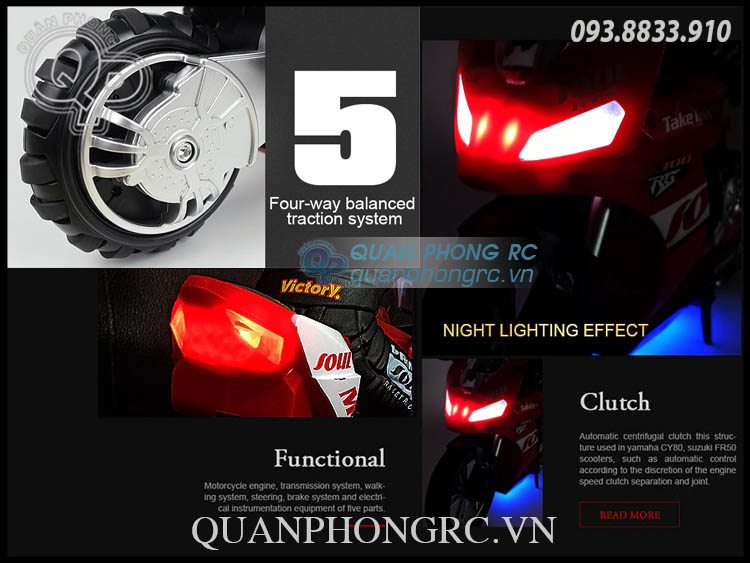 - Xe máy điều khiển STUNT MOTORCYCLE tích hợp con quay hồi chuyển 6 trục giúp xe giữ cân bằng tại chỗ, thậm chí có thể giữ cân bằng chỉ với một bánh sau. Đây có thể nói là công nghệ hiện đại nhất được trang bị trên một chiếc xe mô tô điều khiển mà từ trước đến nay chưa từng có.