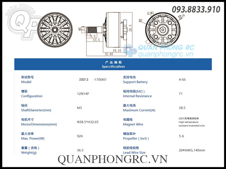 - Rated Voltage: 4 ~ 6S (16.8V ~ 25.2V)