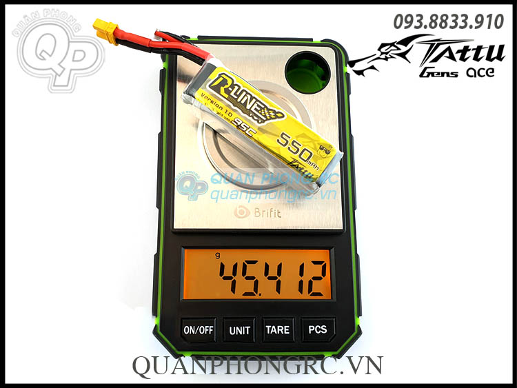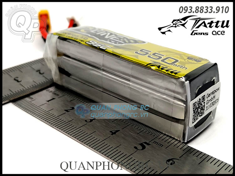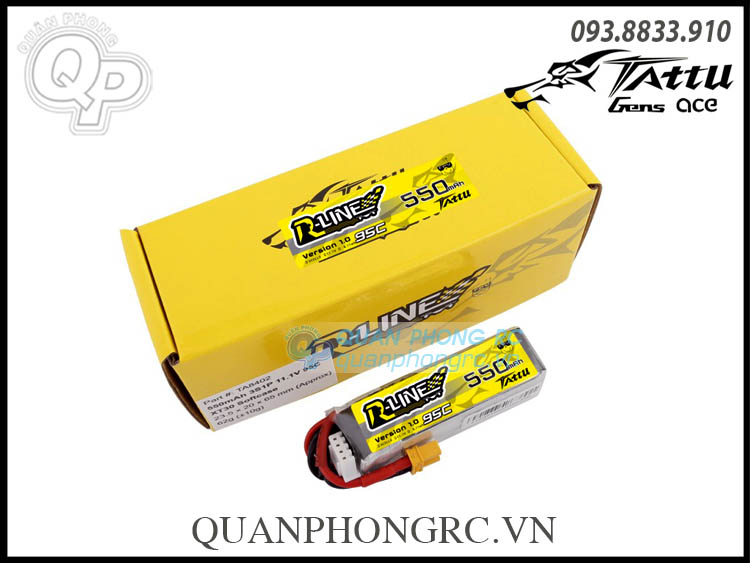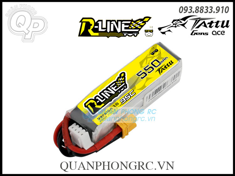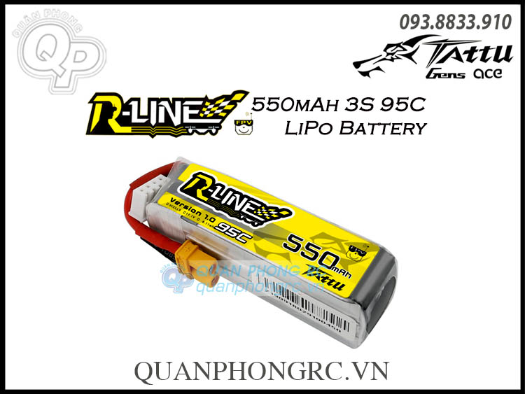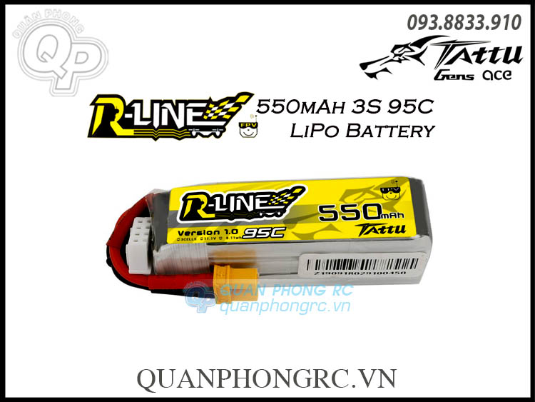 Tattu R-Line 550mAh 11.1V 95C 3S1P Lipo Battery Pack with XT30 plug has full capacity and discharge rate. It is a high discharge rate FPV racing lipo battery. The 95C gives you enough power under load. It is very compact in size and very light in weight. Works perfect with your Multirotor FPV from size 100 to 180.
