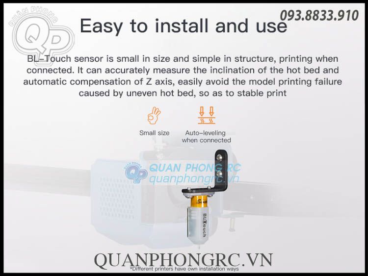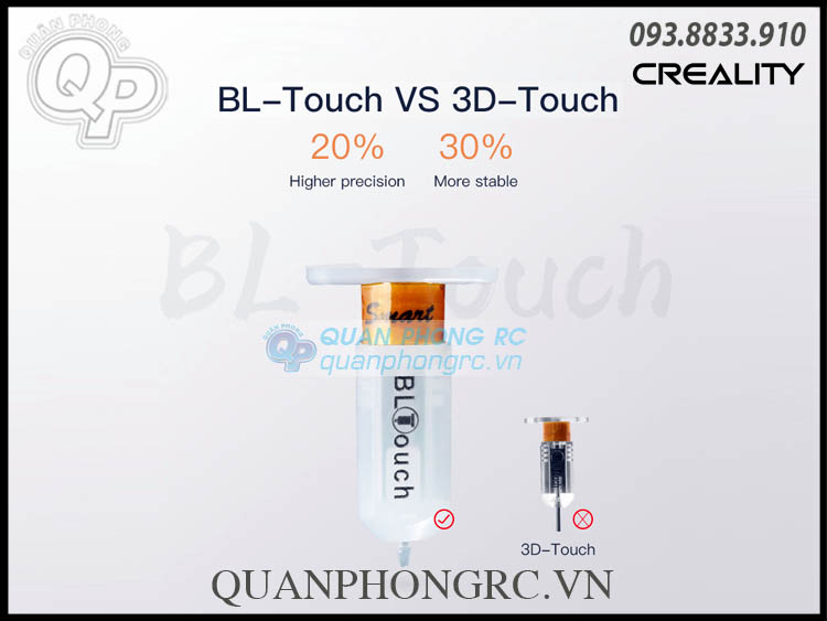Đặc trưng: Các chức năng và điều khiển chính của BLTouch giống như cảm biến cân bằng tầng tự động thông thường, bao gồm một servo RC và microswitch. Vì vậy, BLTouch có thể được áp dụng trên hầu hết các loại mạch.