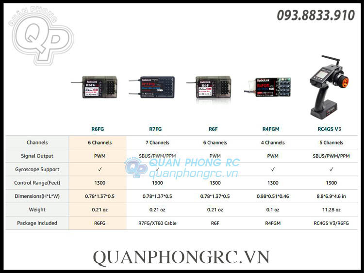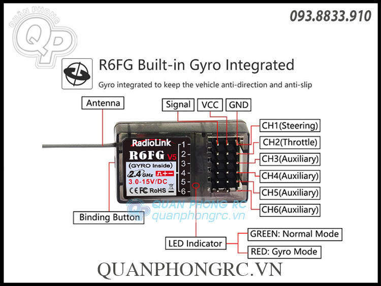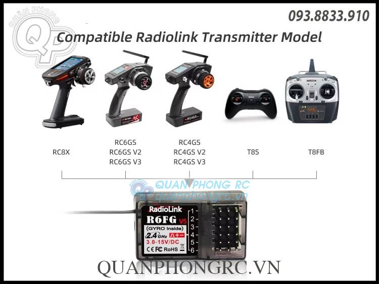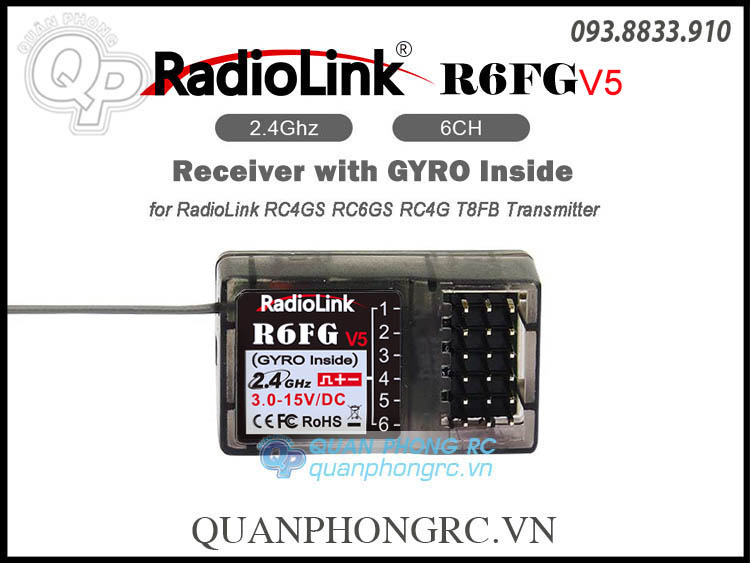 Bộ Thu Sóng Radiolink R6FG V5 2.4GHz 6 CH FHSS Receiver HV Gyro For RC4GS RC3S RC4G T8FB RC6GS