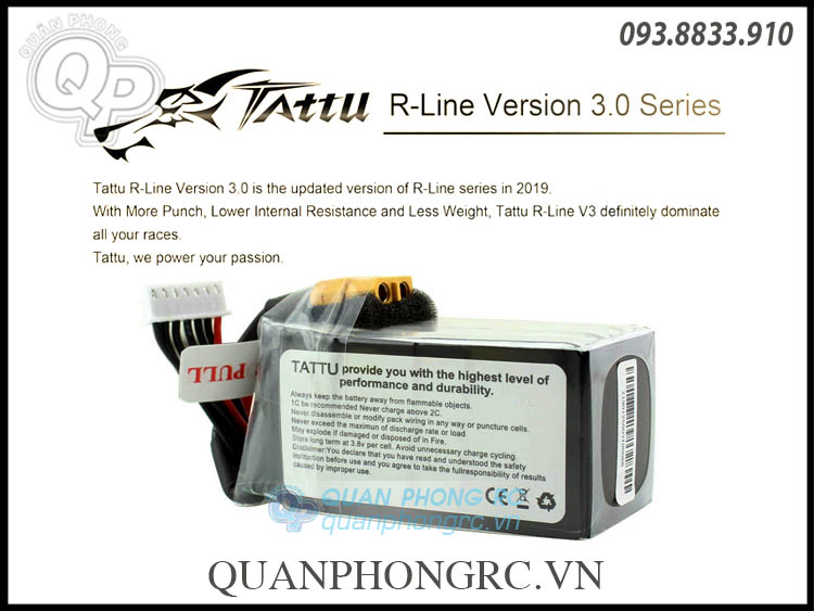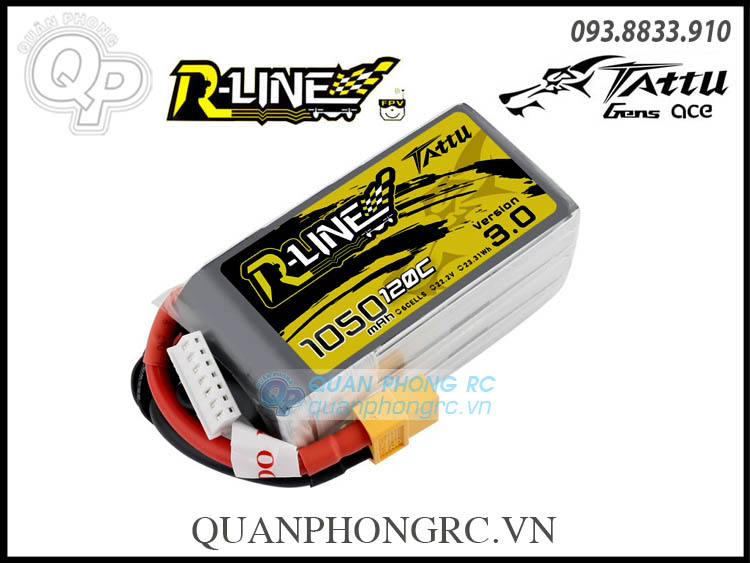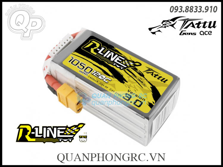Tattu R-Line 1050mAh 6S 120C 22.2V LiPo Battery XT60 Plug For FPV Racing Drones