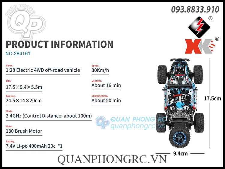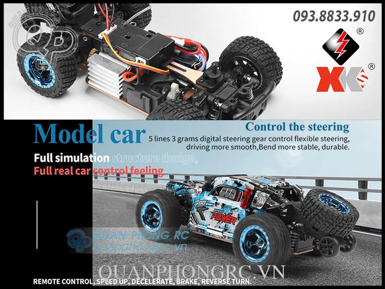 1. Xe điều khiển từ xa 4WD: Tốc độ tối đa 30km/h, sử dụng động cơ 130 rpm công suất siêu khỏe, điều tốc điện tử, năng lượng điện chuyển đổi thành công suất tối đa, 4 bánh lái cho xe đua có thể cung cấp mô-men xoắn điện mạnh mẽ đáng kể làm cho chiếc xe dễ dàng để chinh phục mọi nẻo đường.