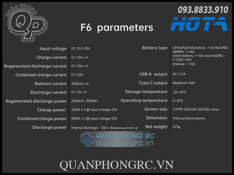 Sạc 4 Kênh HOTA F6 Quad Channel Smart Charger 1000W