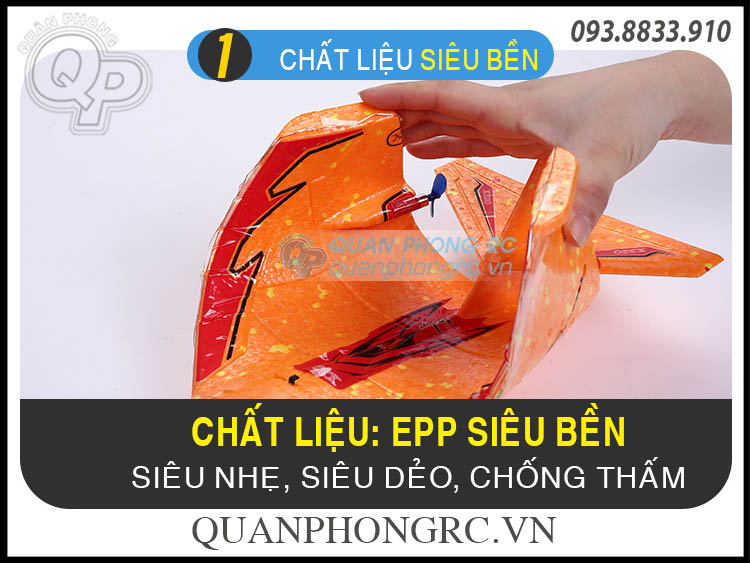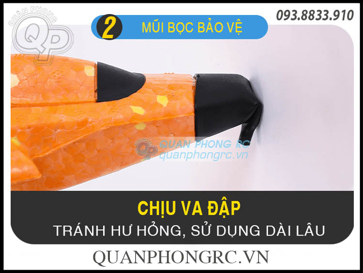 - Máy bay nhỏ và nhẹ, khối lượng nhẹ, chất liệu nhựa EPP bền bỉ, mũi được trang bị nắp Silicon mềm chống chịu va đập tăng độ bền cho máy bay.