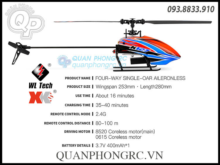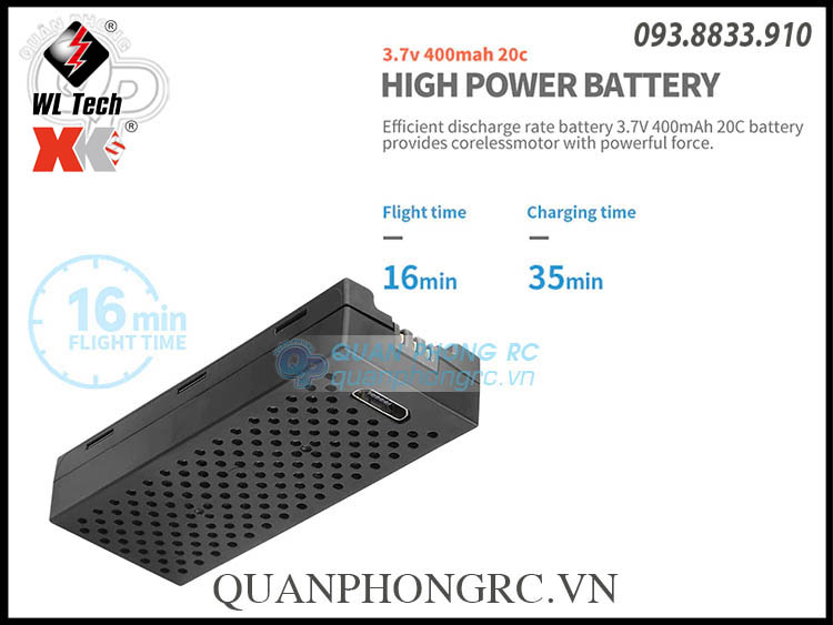2. Use 8520 coreless motor, 3.7v 400mAh 20C high rate battery with USB charging plug.