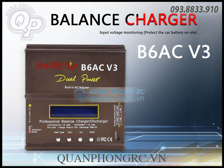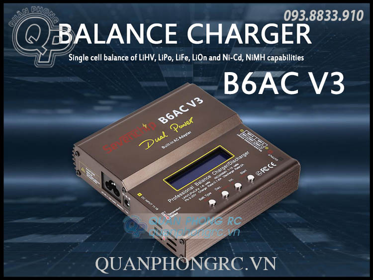 The upgraded B6AC V3 LiPo Battery Balance Charger can support a variety of battery types to fit all your balance charging needs. With high 80W power and a 6 amp max charging current, you can charge your batteries lightning fast, while ensuring they get balanced safely.