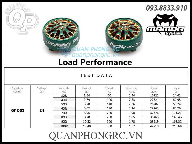- Điện Áp định mức: 3 ~ 4S (12.6V ~ 16.8V)