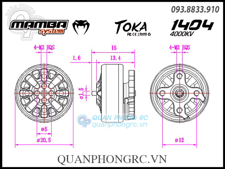 - 1x Động Cơ Không Chổi Than Diatone MAMBA TOKA 1404 4000KV