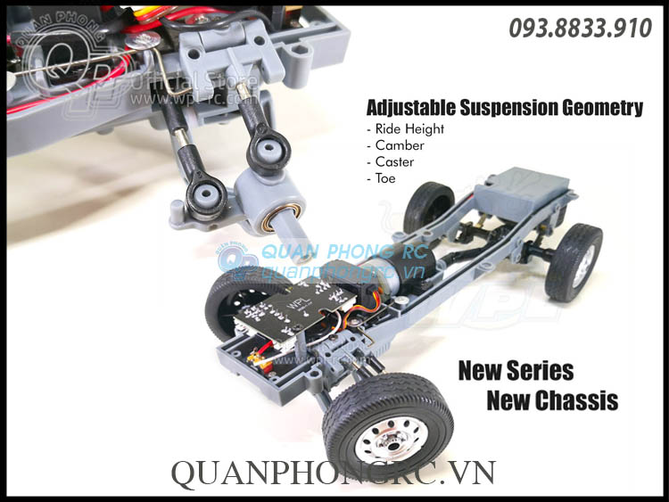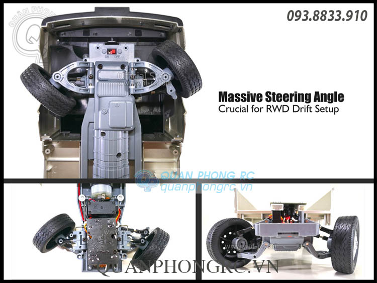 - Góc Camber của hai bánh trước có thể điều chỉnh được như ở ô tô thật, giúp cho xe vững vàng hơn, tránh bị lật khi vào cua nhanh. Hệ thống lái của Xe tải Su cóc điều khiển từ xa có góc lái rộng giúp cho xe thực hiện được cả những pha drift vui mắt.
