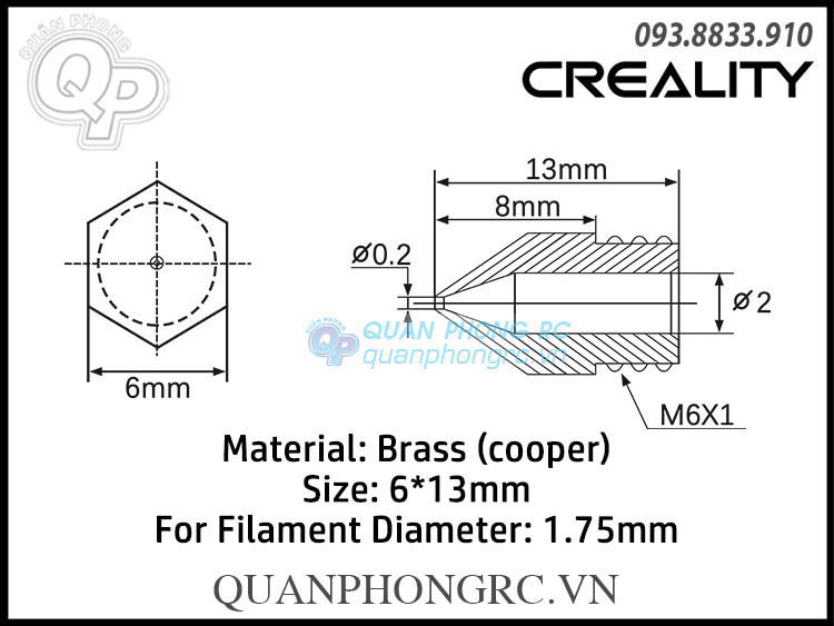 Đầu Đùn Nhựa Creality Máy In 3D 1.75mm - 0.2mm Brass Printer Nozzle (1 Cái)