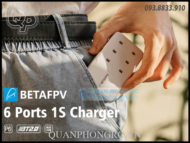 This new 6 ports 1S battery charger supports PH2.0 and BT2.0 at the same time. Moreover, the charging is faster when using 30W adapter (not included). Compact, fast-charging, and portable, choosing a 1S battery charger that best suits your needs will no longer be difficult with this 6 Ports 1S charger & adapter.