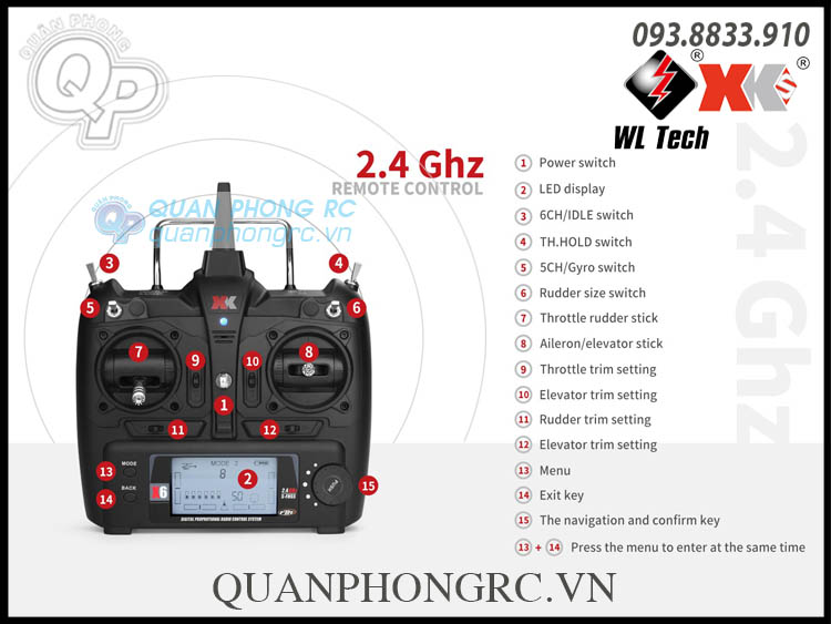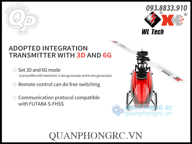 Chế độ 3D và 6G; 3D Aerobatics; hover ;Small and big rudder setting.