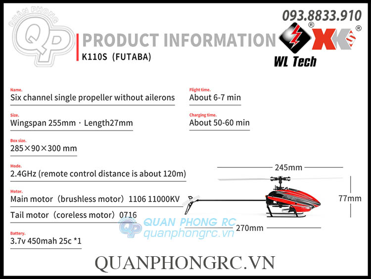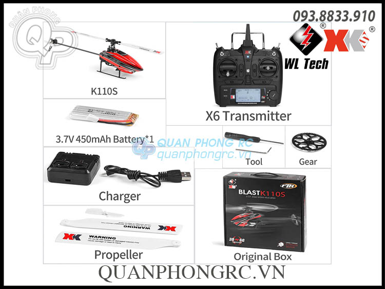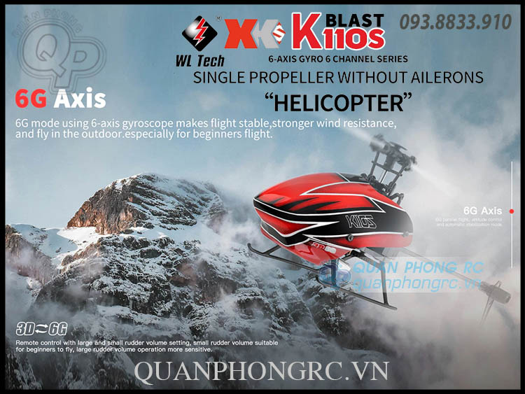 WLtoys K110S 6CH RC Helicopter System RC Brushless 3D6G RTF (Không Chổi Than)