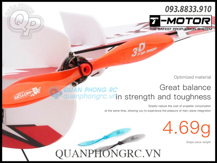 Lần đầu tiên xuất hiện trong lĩnh vực máy bay cánh bằng, cánh 3D F3P T-motor mang đến sự mạnh mẽ, nhẹ và cân bằng rất tốt.