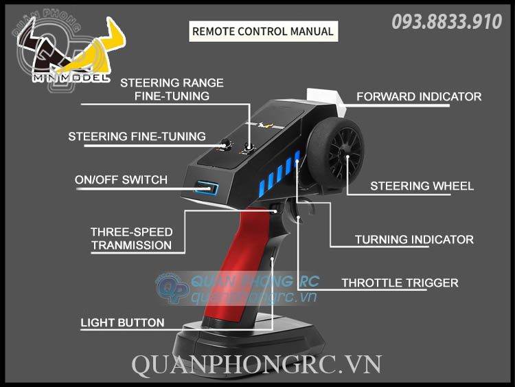 - Tần số sóng tự động chống nhiễu 2.4GHz, chơi chung với nhiều xe khác