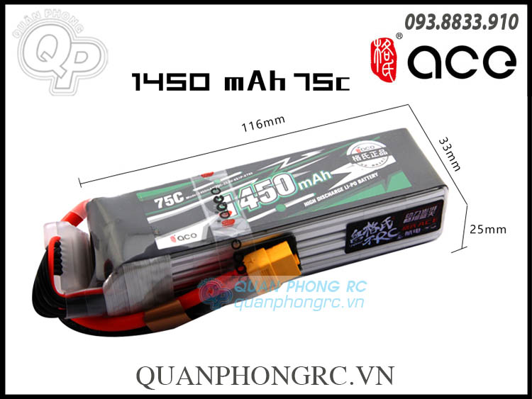 Ace 1450mAh 6S 75C 22.2V LiPo Battery XT60 (New Version)