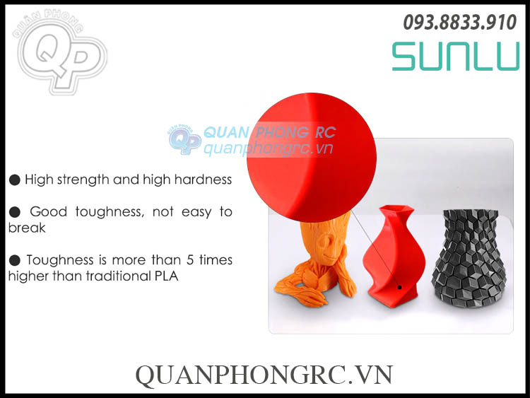 - Độ bền dẻo cao gấp 5 lần so với nhựa PLA trên thị trường.