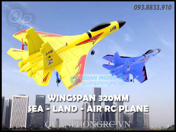 Máy Bay Mini J-11B 325mm Wingspan EPP Sea-Land-Air 3 in 1 RC Airplane RTF Kèm LED