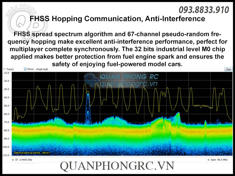 Băng tần: 2.4GHz ISM band (2400MHz~2483.5MHz)