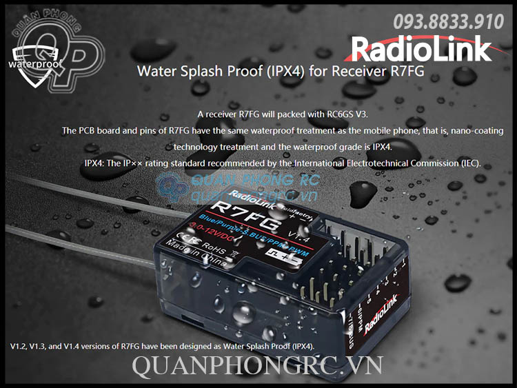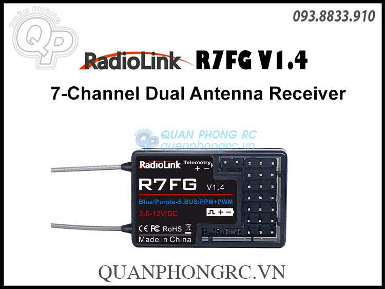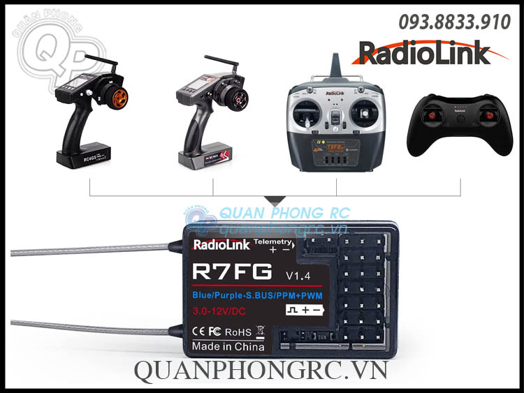 Bộ Thu Sóng Radiolink R7FG V1.4 2.4GHz 7CH FHSS Receiver HV Gyro For RC4GS RC3S RC4G T8FB RC6GS
