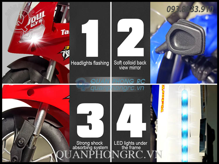 - Xe máy điều khiển STUNT MOTORCYCLE tích hợp con quay hồi chuyển 6 trục giúp xe giữ cân bằng tại chỗ, thậm chí có thể giữ cân bằng chỉ với một bánh sau. Đây có thể nói là công nghệ hiện đại nhất được trang bị trên một chiếc xe mô tô điều khiển mà từ trước đến nay chưa từng có.