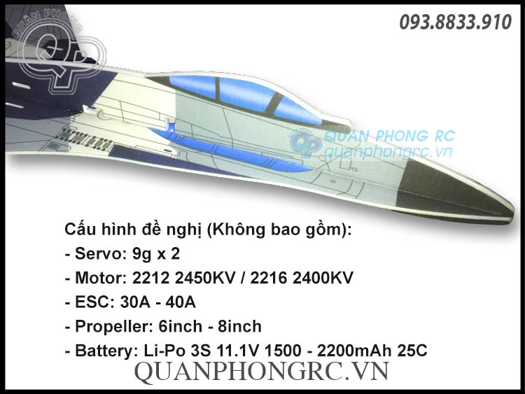 - Battery: Li-Po 3S 11.1v 1500 - 2200mah 25C trở lên