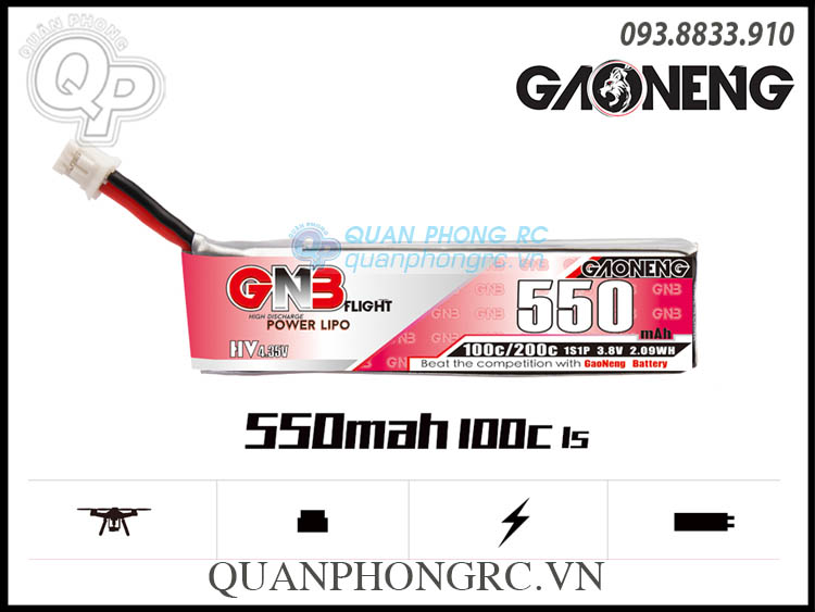 GNB 550mAh 1S 100C 3.8V LiHV Battery PH2.0