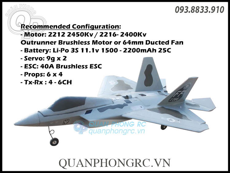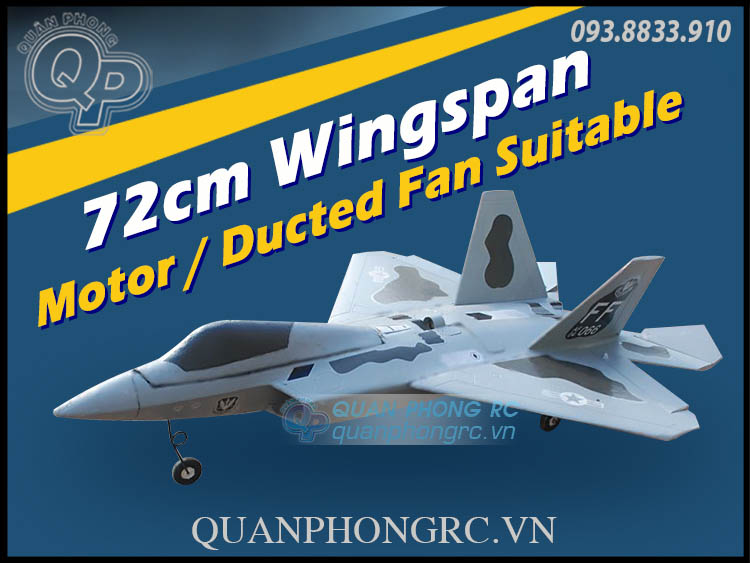 Kit EPO F22 Raptor Sơn Xám Sải 72cm + Decal + Càng Đáp (Không Gồm Đồ Điện)