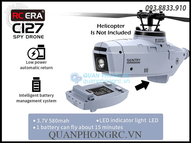 Pin 580mAh 1S 3.7V LiPo Battery For C127 SENTRY RC Helicopter